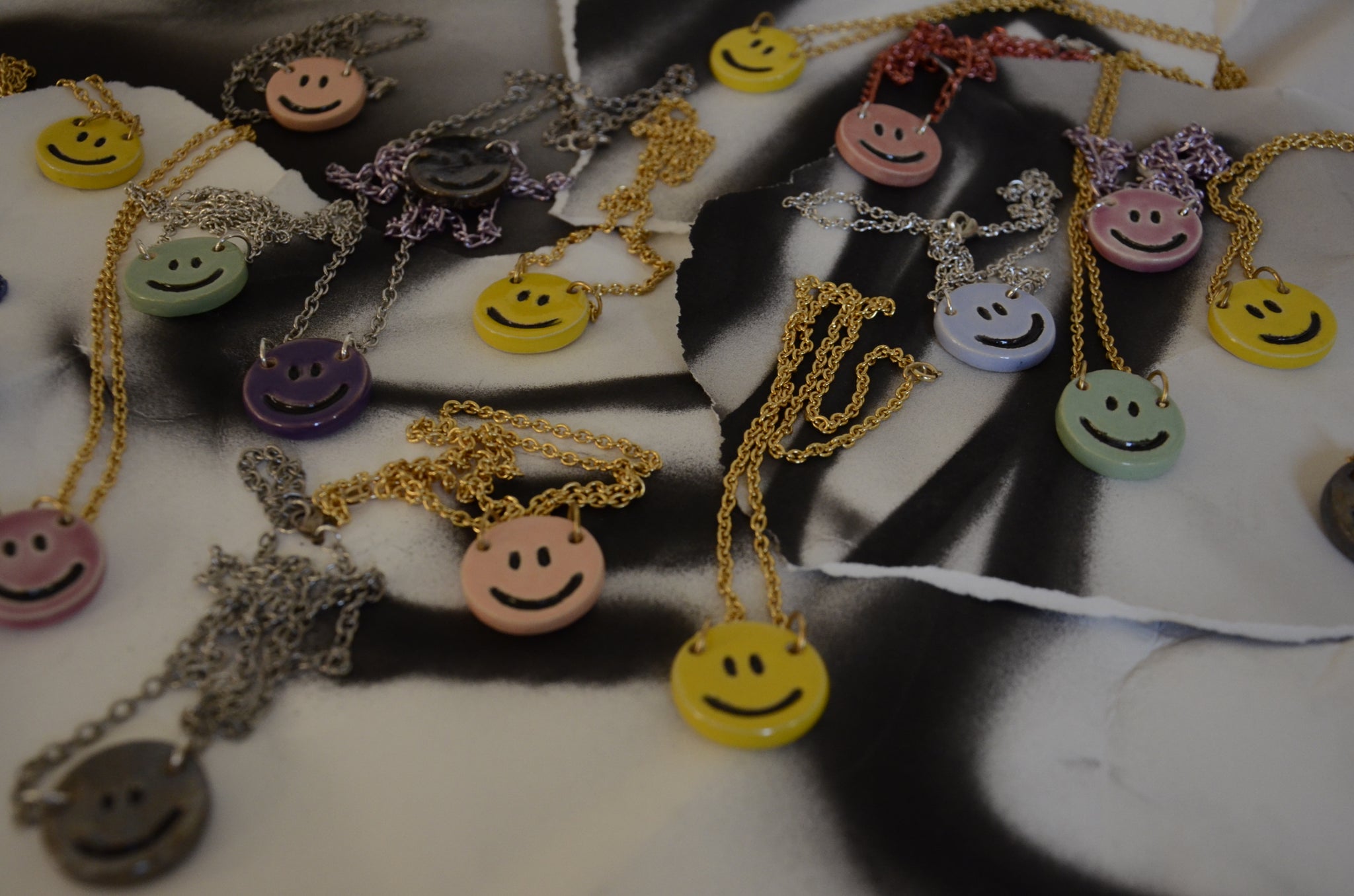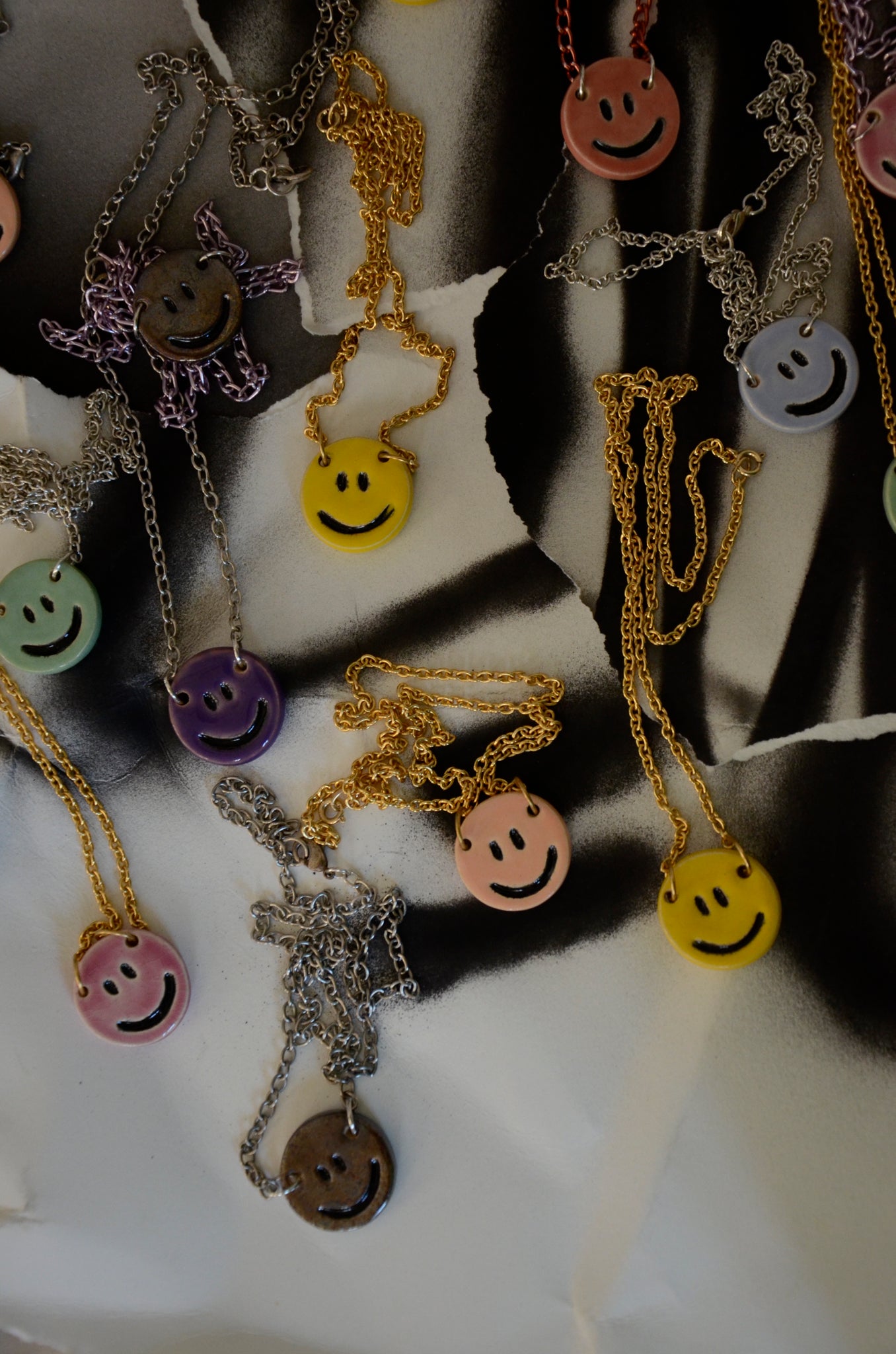 Ceramic piece modeled and enameled by hand on different chains.